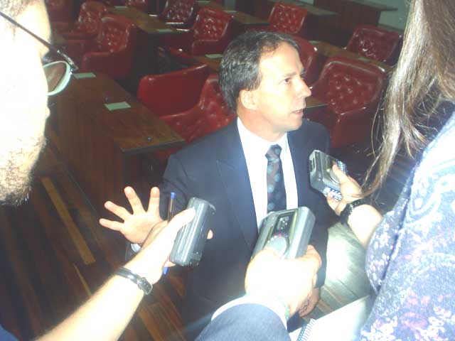 30-Após discurso, Líder do Governo dá entrevista aos jornalistas. Ele disse que o Governo já deu, além dos 9,57%, mais de 200 milhões para os novos cursos. Ele apenas se esqueceu de falar como serão mantidos tais cursos |