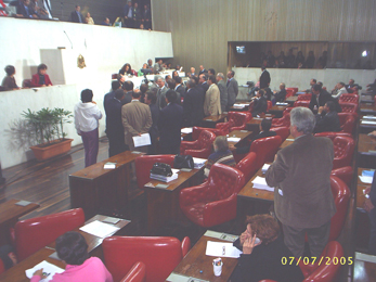 30-Manifestantes na Galeria pedem nova votação, o que não é possível porque o Presidente da Assembléia Legislativa já tinha encerrada a votação e passado para alteração de votos |