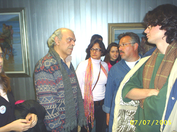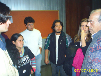 34-Após o Presidente da Assembléia Legislativa encerrar a sessão, membro do Fórum das Seis conversa com alunos e professores. |