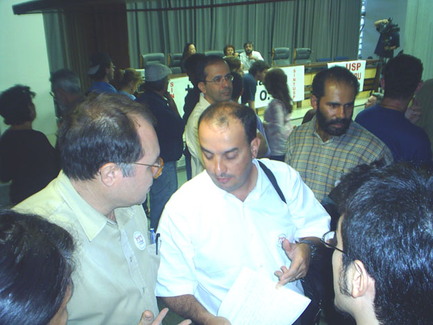 7-Quando chegamos na Assembléia Legislativa o Reitor da Unesp estava falando com servidores, docentes e alunos |