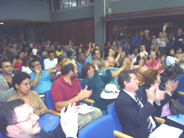 18-Servidores, professores, alunos e Deputados aplaudem a decisão da Comissão de rejeitar o veto do Governador. Agora o veto irá para o plenário, onde todos os Deputados votarão |