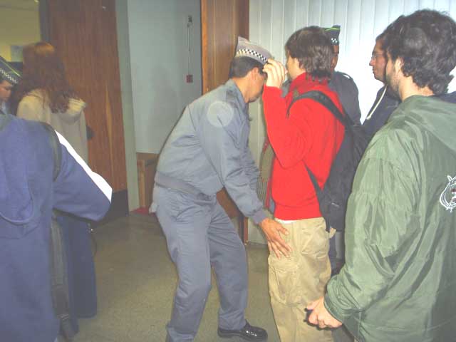 3-Alunos sendo revistados para entrarem na Galeria JK |