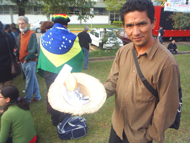 33-Servidor usando bandeira durante manifestação |