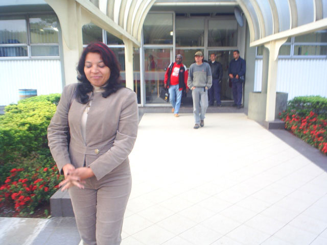38-Diretora do Sinteps saindo do prédio da Reitoria da USP após término da reunião |