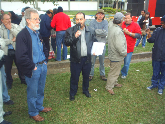 37-Diretor do Sintunesp saindo do prédio da Reitoria da USP após término da reunião |