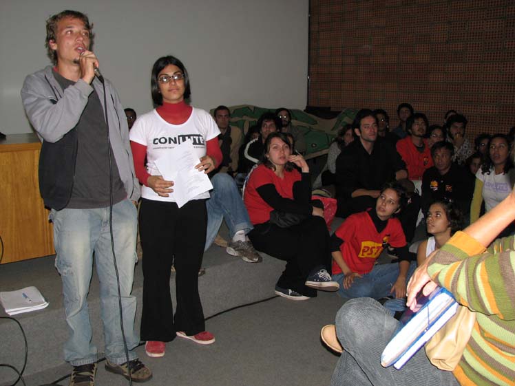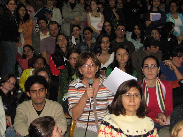 | 5-Professora da Faculdade de Ciências e Letras fazendo pergunta | 6-Alunos da Faculdade de Ciências e Letras passando informe sobre as atividades dos estudantes |
