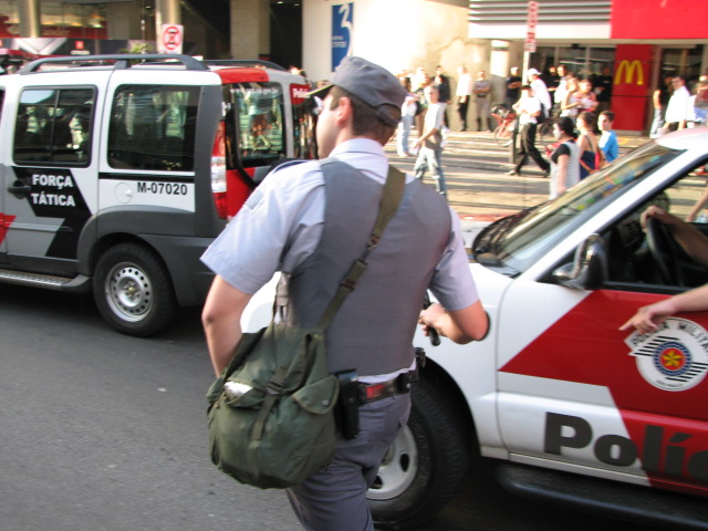 38-Policial com sacola com spray pimenta acompanha passeata |