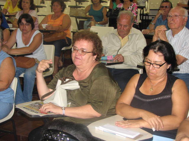 | 5-Assessor Jurídico do Sintunesp passando informações sobre os precatórios | 6-Servidora da Faculdade de Odontologia fazendo pergunta ao Assessor Jurídico do Sintunesp |