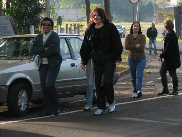 13-Servidoras subindo para se juntar aos colegas depois de organizar a entrada dos veículos no Campus |