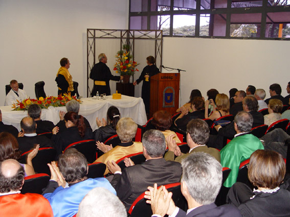 | 17-Reitor da Unesp discursando | 18-Servidores, professores, alunos e convidados presentes na cerimônia |
