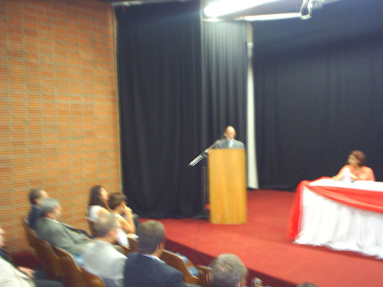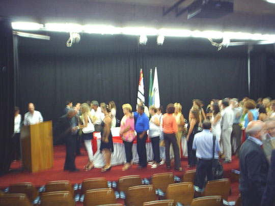 | 11-Professores, alunos, servidores e convidados durante a solenidade de posse | 12-Cumprimentos ao Diretor e Vice-Diretor empossados |