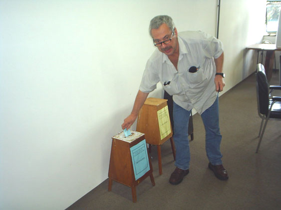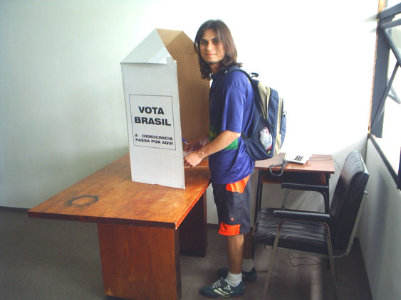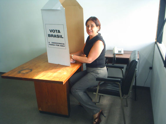 | 11-Aluno de Graduação exercendo o direito de votar | 12-Professor depositando o seu voto na urna |