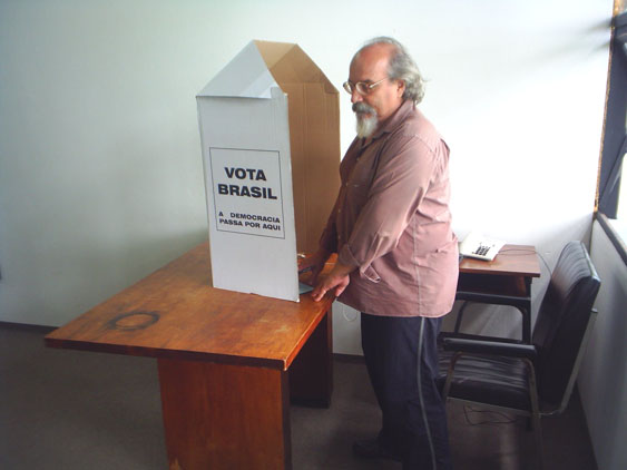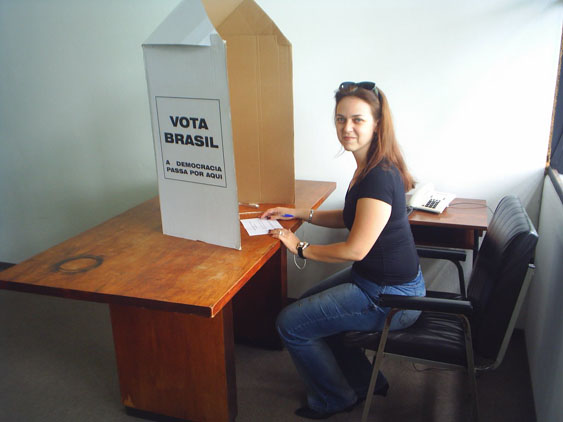 | 23-Aluna de Pós-Graduação votando | 24-Professora assinando a lista de presença |