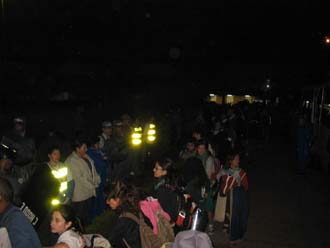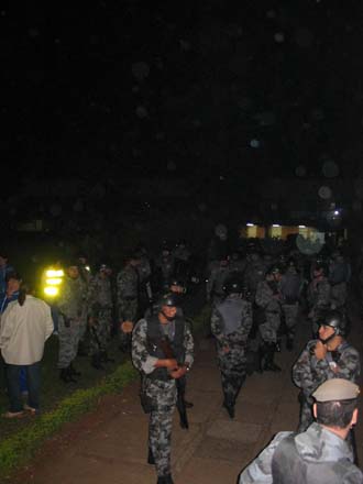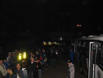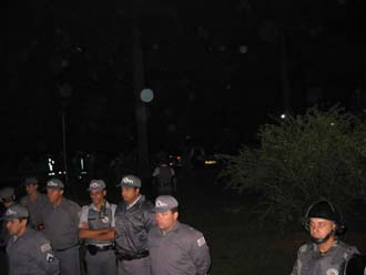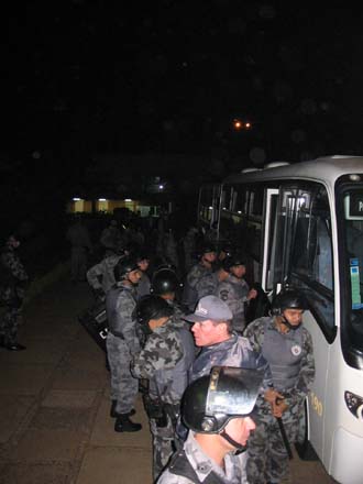9-Alunos em fila e de braços dados caminham para os ônibus que os conduzirá até a Delegacia |