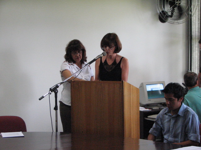 21-Coordenadoras do cerimonial anunciando que será tocado o Hino Nacional |