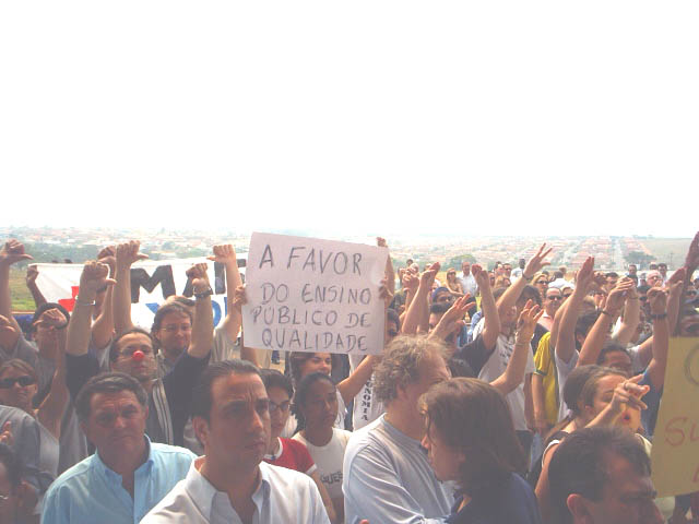 59-No local da cerimônia alunos levantam seus cartazes e faixas |