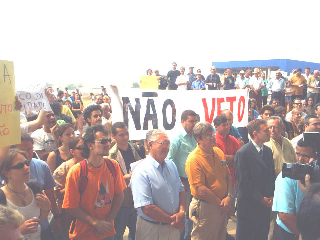 58-No local da cerimônia alunos levantam seus cartazes e faixas |