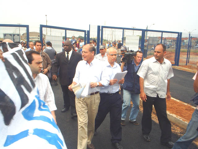 41-Já dentro da do terreno da fábrica o Governador caminha até o local onde será realizada a cerimônia de inauguração |