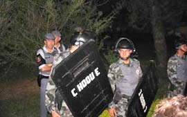 pela chegada da polícia, acompanhada