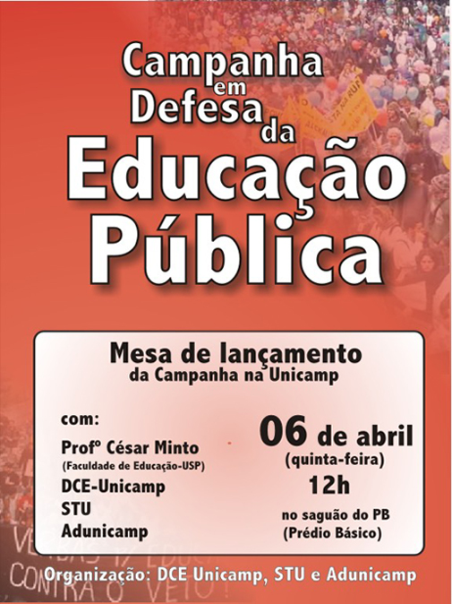 Campanha em Defesa da Educação Pública. Mesa de lançamento da campanha na Unicamp. Cartaz |
