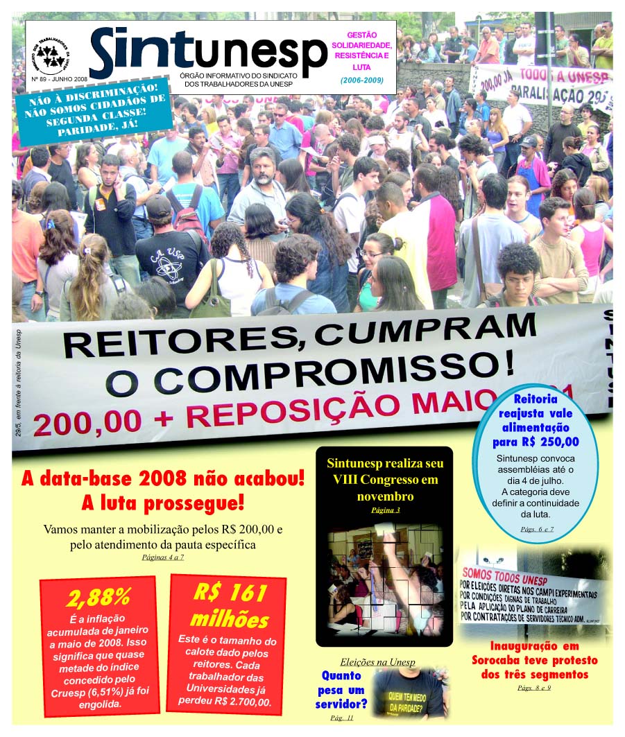 Sintunesp nº 89 - junho/08. Alguns assuntos: