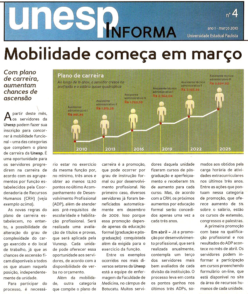 Mobilidade Funcional começa em março. Com plano de carreira, aumentam chances de ascensão. unespInforma |