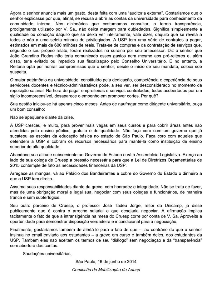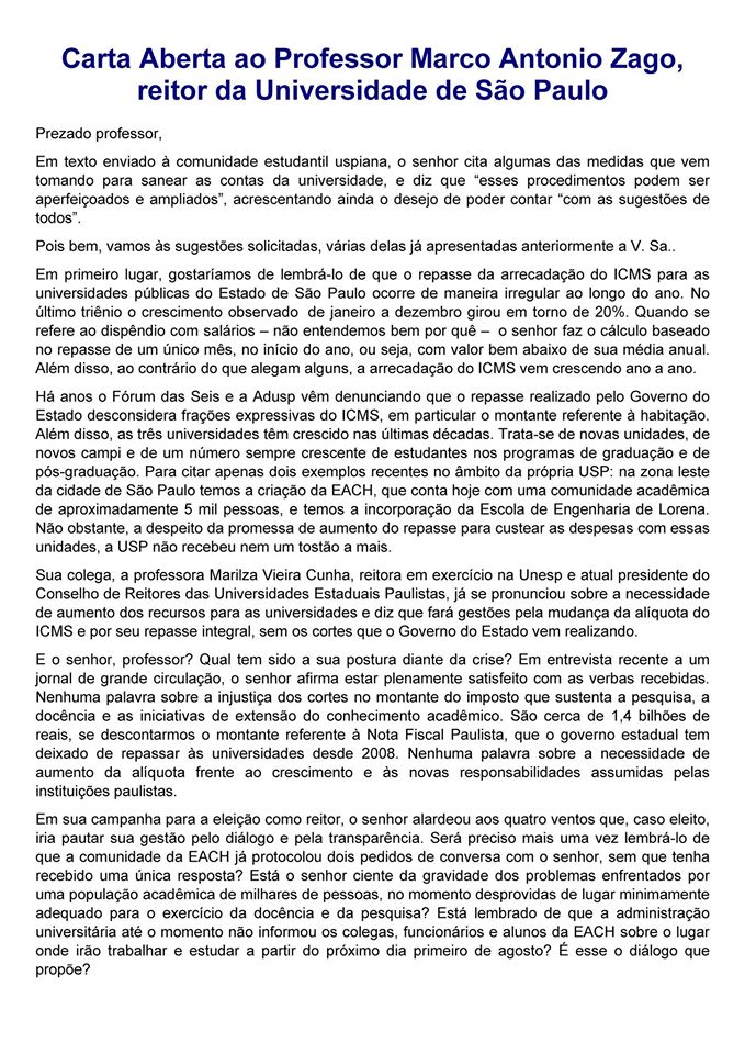 Carta da Adusp enviada ao |