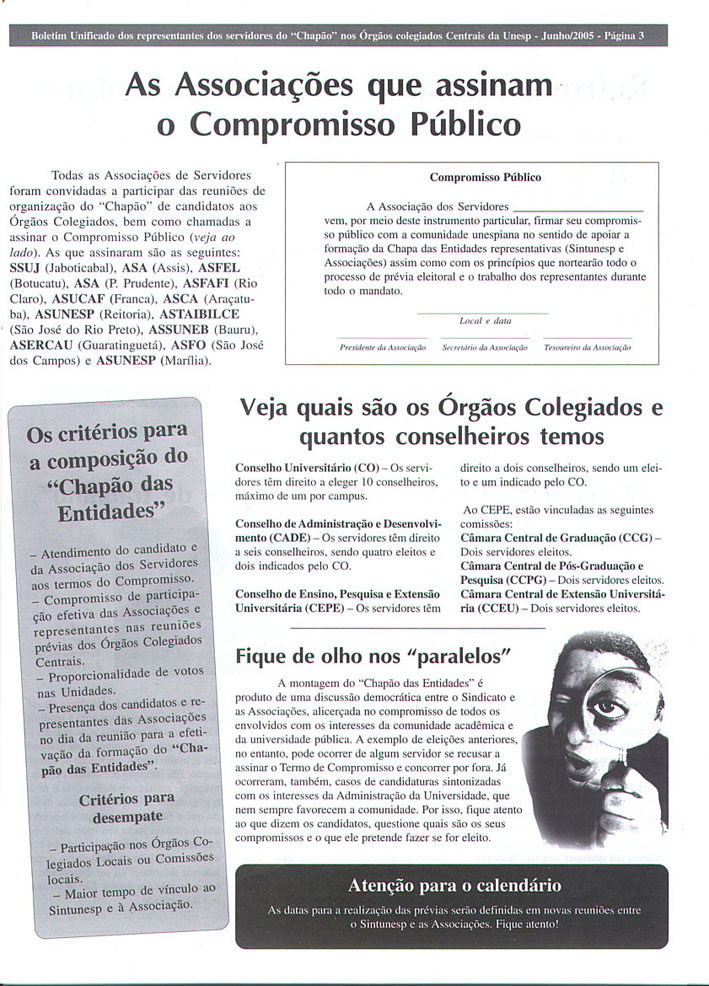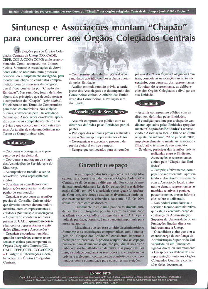 Sintunesp e Associações montam "Chapão" para concorrer aos Órgãos Colegiados Centrais - Boletim Unificado Página 02 |