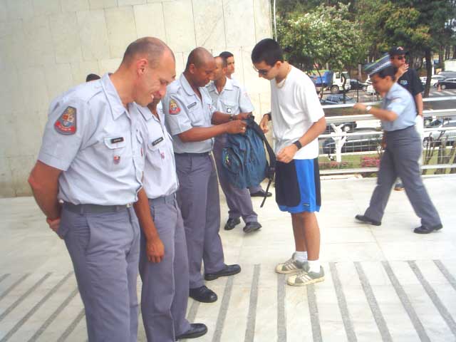 1-Aluno sendo revistado para entrar na Assembléia Legislativa |