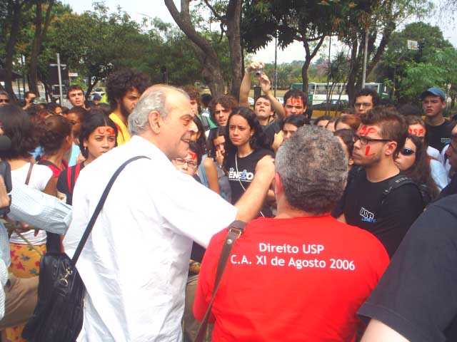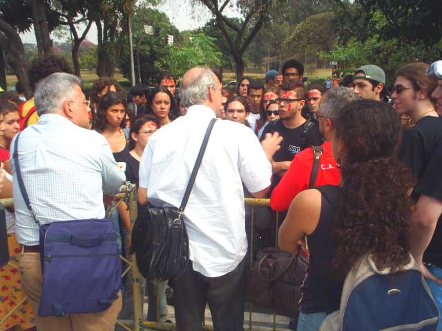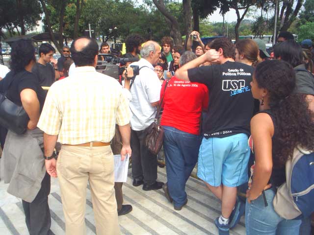 2-Após reunião com o Presidente da Assembléia Legislativa, membros do Fórum das Seis saem da Assembléia para passar os informes aos alunos, servidores e docentes que ainda não conseguiram entrar |