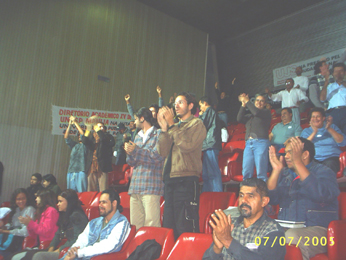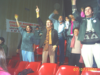 40-Sessão iniciada às 23h00. Em poucos minutos é aprovado o item 3 da LDO, favorecendo as Universidades. Servidores, professores e alunos comemoram a vitória |