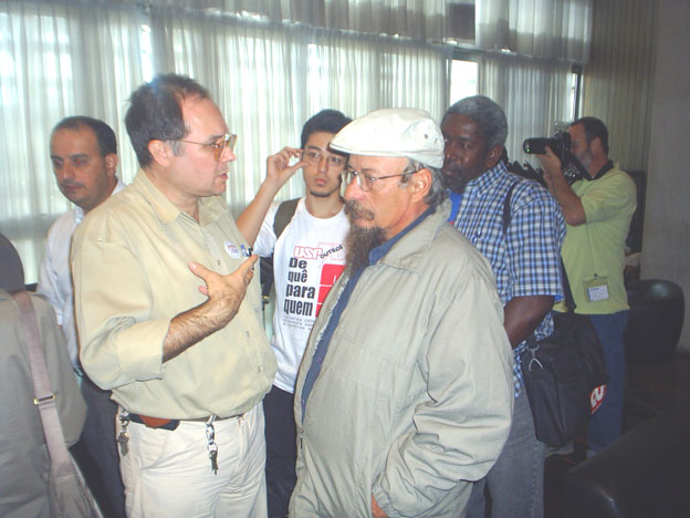 64-Coordenador do Fórum das Seis conversando com o Presidente da Assembléia Legislativa após o termino da reunião |