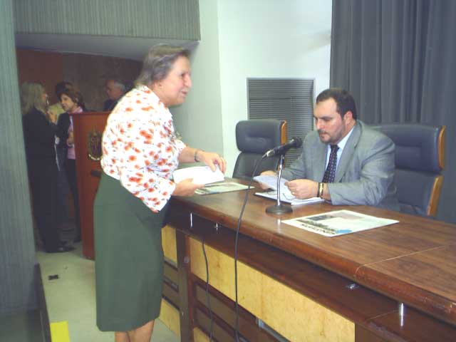 16-Diretora do Sintusp entregando panfleto à Deputado |