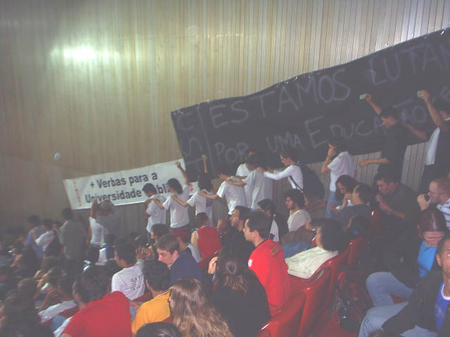 48-Deputado Campos Machado usando o tempo de outro Deputado retorno a Tribuna para mais discurso. Durante o seu discurso alunos fazem trenzinho, andando de um lado para o outro da galeria |