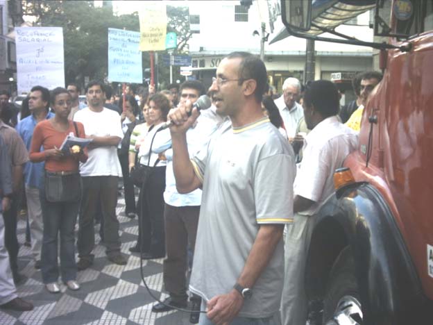 2-Servidor de Franca discursando durante manifestação na frente da Reitoria da Unesp |