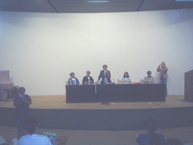 1-Servidora apresentando palestrantes e as pessoas que compõe a mesa |