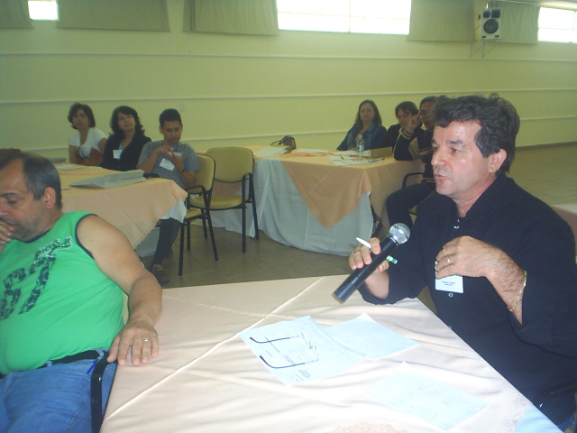 14-Servidor do Campus de Rio Claro fazendo apresentação do trabalho realizado em grupo |