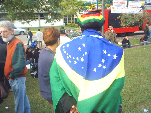 33-Servidor usando bandeira durante manifestação |