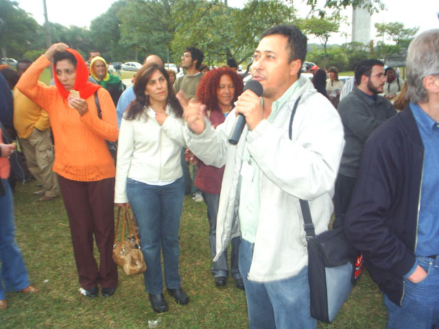 37-Diretor do Sintunesp saindo do prédio da Reitoria da USP após término da reunião |