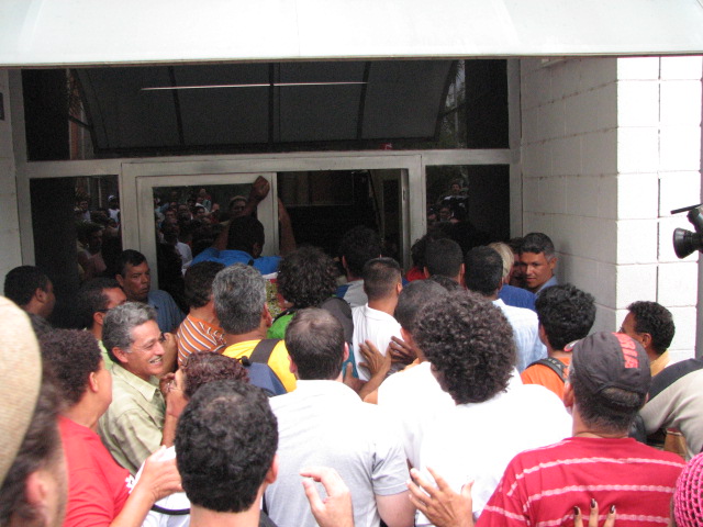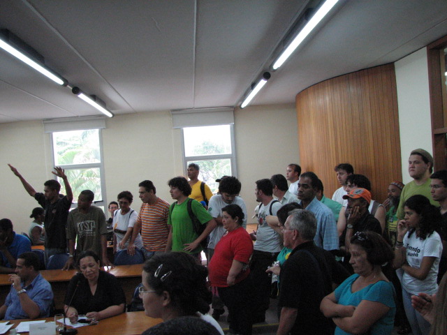 27-Quando chega a primeira informação com a proposta do Cruesp (1,5% já, mas descontado do aumento de 2008), servidores ficam revoltados e invadem o prédio da Reitoria |