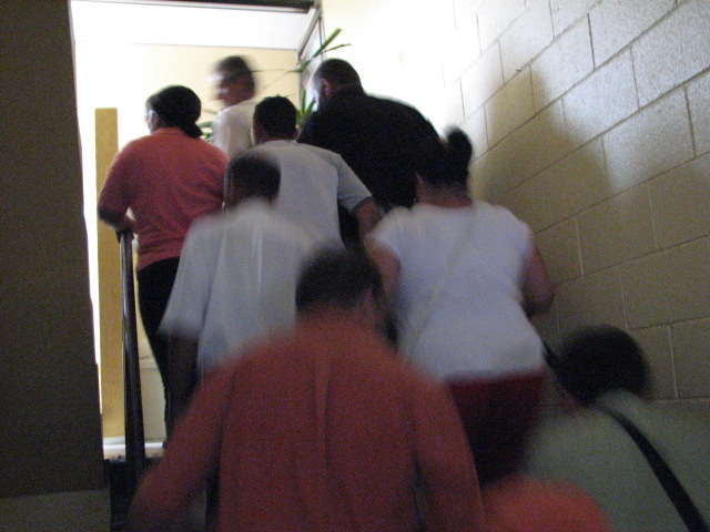 28-Servidores subindo escada até a sala onde estava sendo realizada a reunião do Fórum das Seis com o Cruesp |