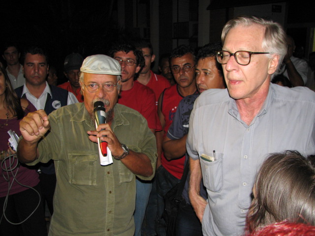 reunião, por volta das 20h30, Diretor do Sintusp e Adusp passam o resultado da