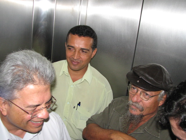 7-Membros do Fórum das Seis no elevador indo para reunião com o CRUESP |