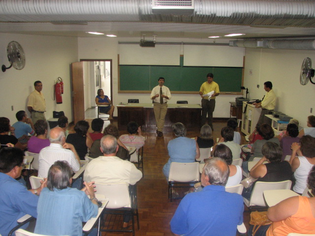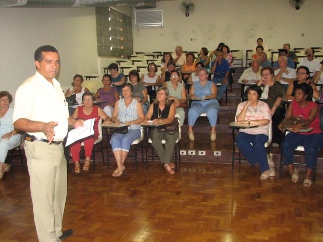 | 5-Assessor Jurídico do Sintunesp passando informações sobre os precatórios | 6-Servidora da Faculdade de Odontologia fazendo pergunta ao Assessor Jurídico do Sintunesp |
