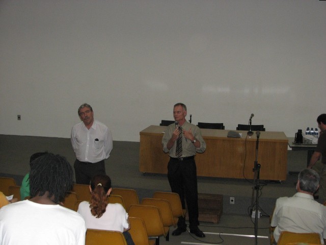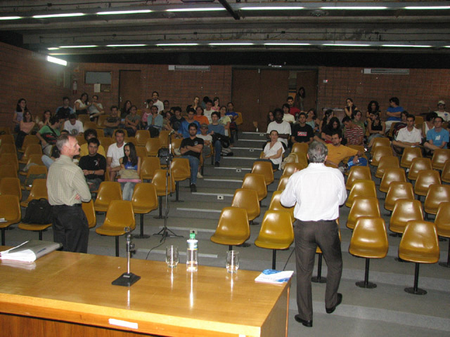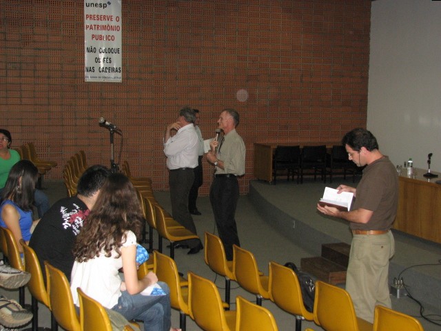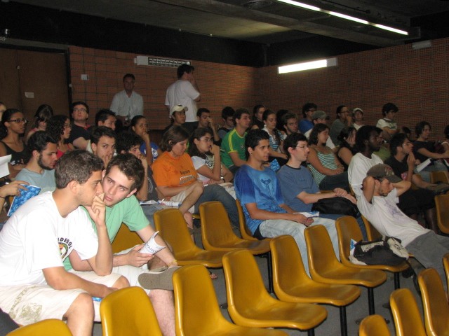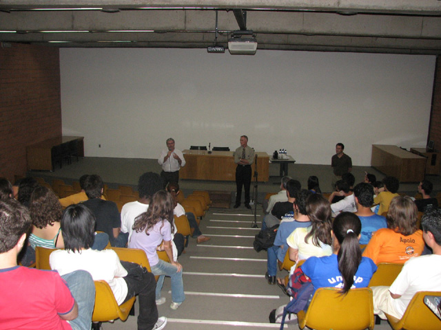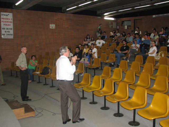 | 5-Candidato a Reitor respondendo as perguntas | 6-Alunos presentes |