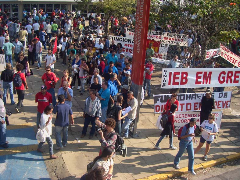 1-Servidores, professores e alunos na frente da Reitoria da USP aguardam o início da negociação |