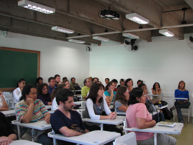4-Aluna da Faculdade de Ciências e Letras falando com os servidores |
