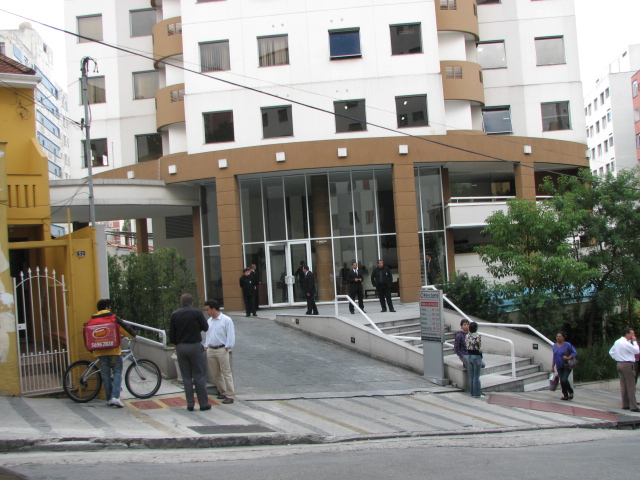 2-Chegando no local da manifestação. Na frente do prédio seguranças. |