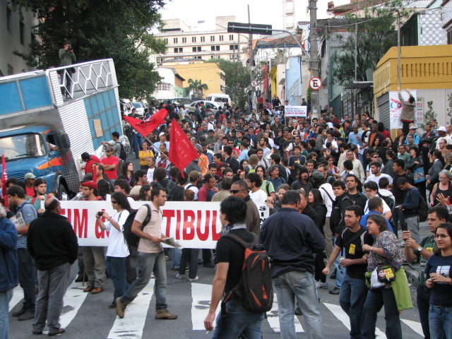 Manifestação em São Paulo durante a reunião entre o Fórum das Seis e o CRUESP.