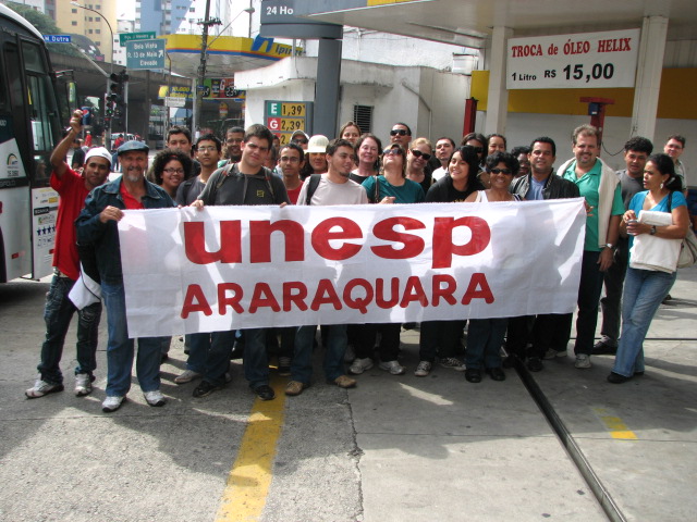 Manifestação em São Paulo durante a reunião entre o Fórum das Seis e o CRUESP.